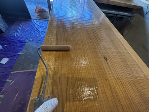 代表ブログこんばんは。心優しい(自称)西区の一級塗装技能士の塗道元の髙橋大祐です。 本日は、いつもご信頼いただいている元請け様からのご依頼でカウンター塗装をしました。 仕上げ塗り作業中 新しい木のカウンターにクリアー塗装をしていま...